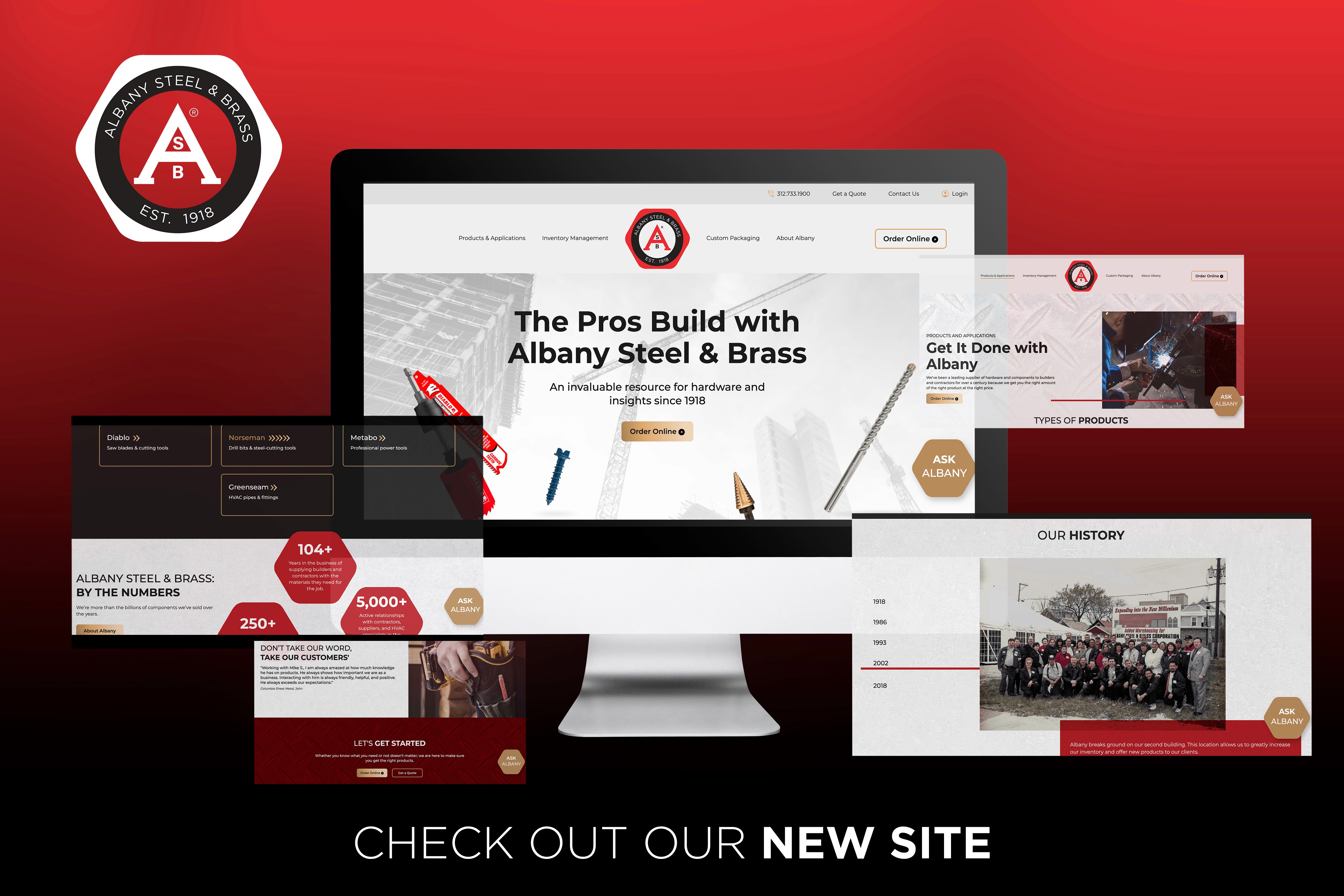Led the rebrand of Albany Steel & Brass, thoughtfully modernizing the identity while preserving the integrity of their trademarked ASB mark. The new logo design incorporates a subtle hex-nut silhouette; a direct nod to the company’s industrial roots and grounding the brand in its core industry. The concentric inner rings were designed to represent partnership, stability, and endurance, reinforcing the company’s long-standing commitment to reliability. Beyond the logo, I developed a cohesive suite of business essentials and led a full website redesign, transforming an outdated digital presence into a modern, streamlined experience that reflects Albany’s exceptional customer service and high-quality products.